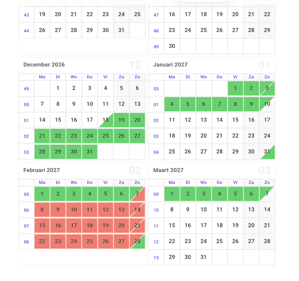 In alta stagione, il periodo di noleggio inizia la domenica.